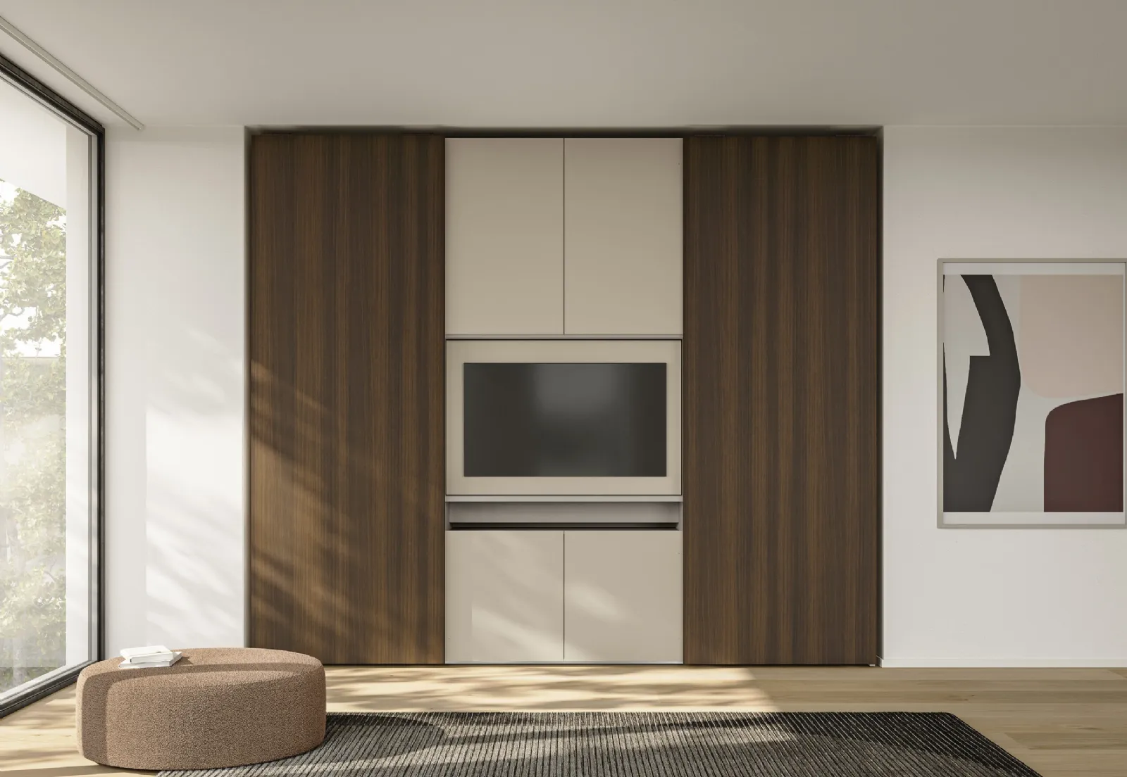 L'armadio Concreta N03NS di Colombini Casa si distingue per le sue ante scorrevoli, che sono ideali per ottimizzare lo spazio e offrire un design moderno e funzionale alla tua casa.