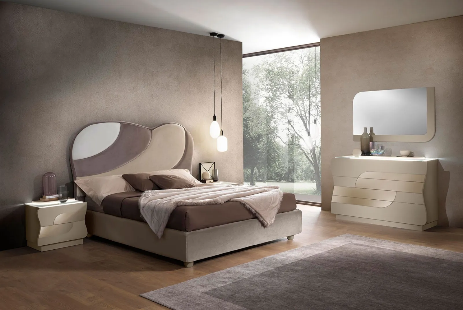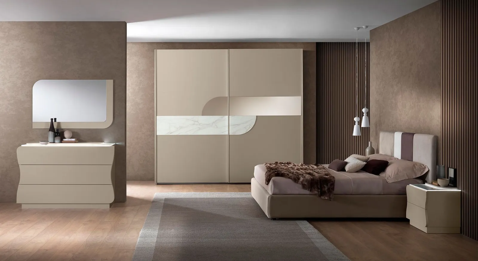 Vuoi ammobiliare la camera da letto con Comodini e mobili con cassetti di Mobil Piu? Ti presentiamo il modello Gruppo Notte Gaia Cachemire in melaminico per spazi moderni.