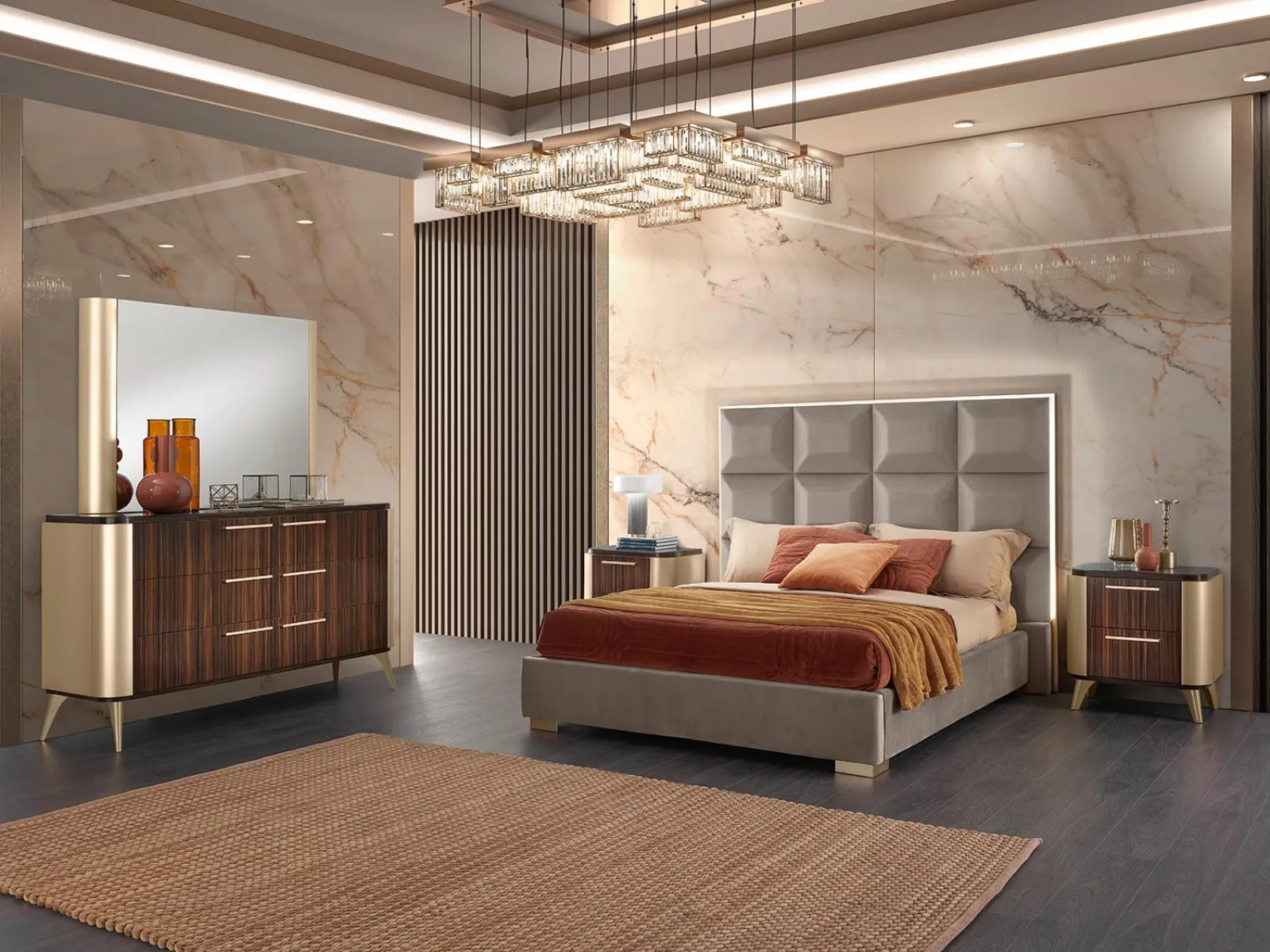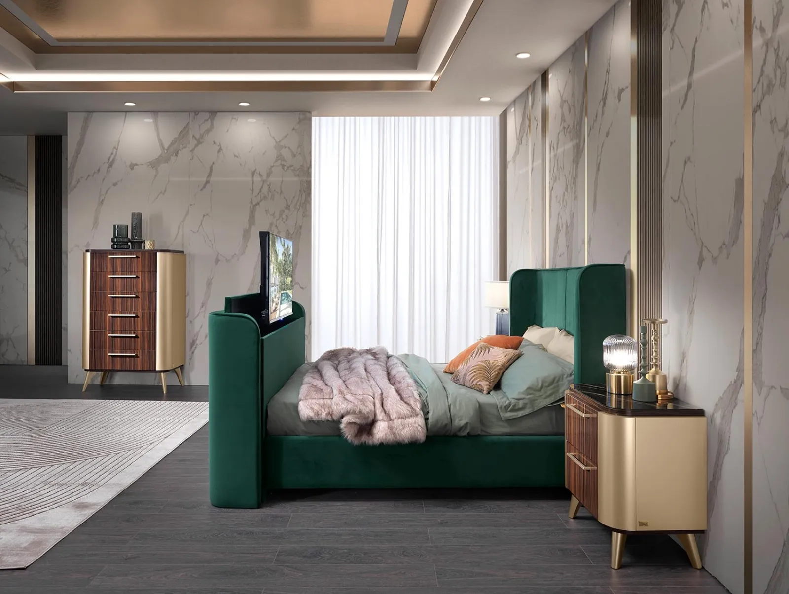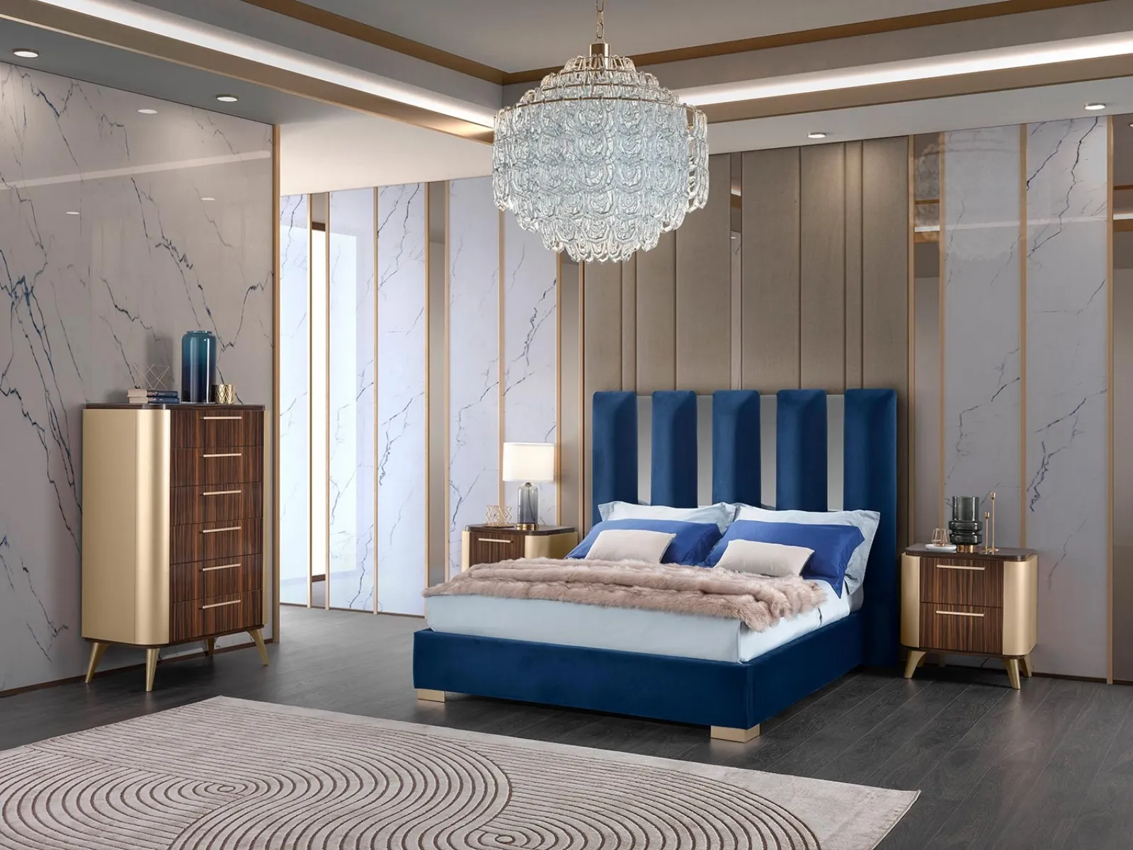 Un ricco catalogo di mobili con cassetti Mobil Piu: i comodini design in melaminico, come Gruppo Notte Malibu, sono tra le soluzioni più esclusive.