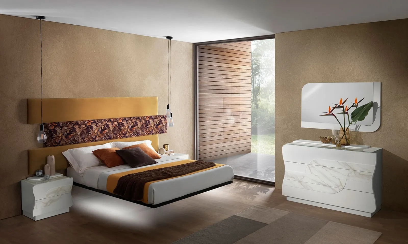 Vuoi ammobiliare la zona notte con Comodini e cassettiere di Mobil Piu? Ti presentiamo il modello Gruppo Notte Gaia Frassino Bianco in melaminico per spazi moderni.