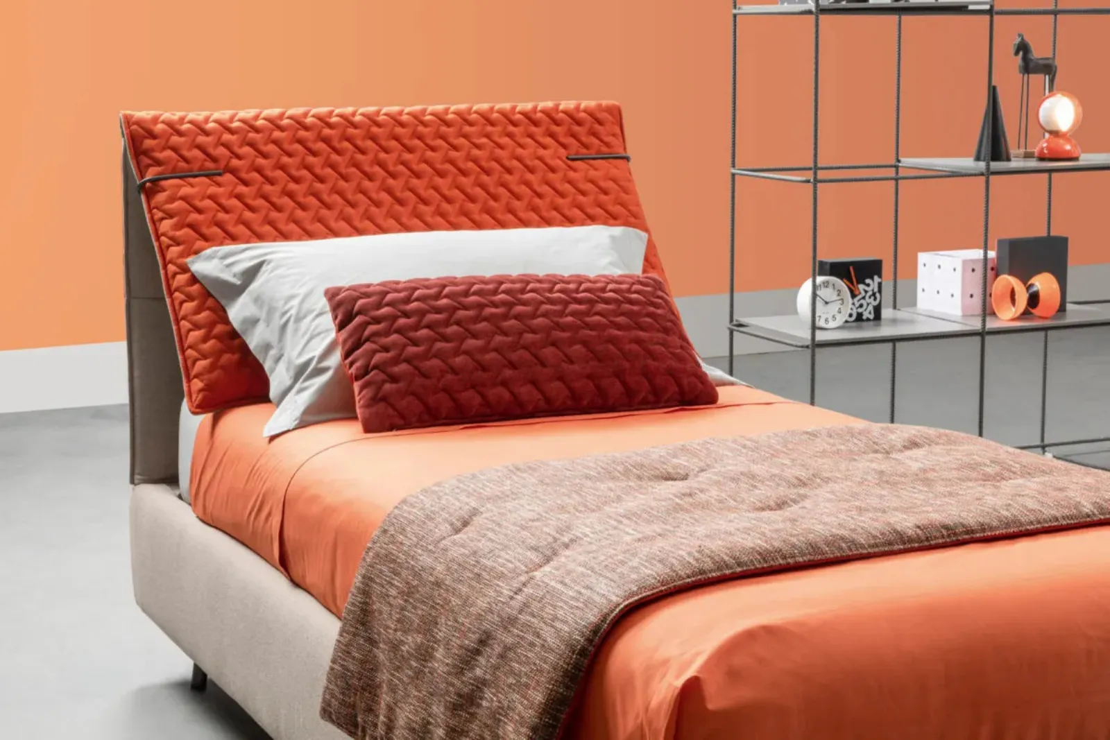 Se desideri mobili ed elementi accessori moderni, il letto singolo in foto fa al caso tuo: #appartiene alla@# nostra linea di letti singoli imbottiti. Questo è uno dei prodotti più inediti del brand Bside, garanzia di durata nel tempo, qualità dei materiali e un design unico. Contattaci e ottieni informazioni sulla nostra linea di Letti singoli in tessuto: arreda la stanza dei più piccoli come l'hai sempre sognata. Il Letto singolo con testiera Spin di Bside in foto è ideale per ultimare perfettamente la cameretta dei tuoi figli, abbinandosi perfettamente con armadi e comodini, accessori e quant'altro.
