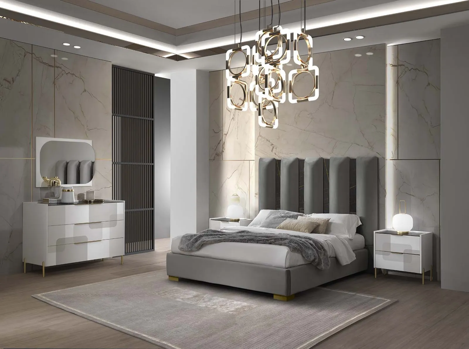 Scopri l'esclusivo Letto Fantasy Luxury di Mobil Piu, un pezzo d'arredo che incarna l'eleganza combinando elementi tradizionali con linee moderne e rigorose. Offriamo un servizio di consulenza personalizzata, consegna e montaggio professionale per garantirti un'esperienza senza pensieri. La nostra copertura si estende a diverse località, inclusi comuni come Pesaro, Ancona e Rimini, assicurando che tu possa godere di questo design glamour e raffinato. Questo letto, con i suoi distintivi dettagli in specchio molato, è progettato per aggiungere luminosità e un tocco esclusivo al tuo ambiente. La nostra offerta include un'assistenza completa post-vendita e una garanzia estesa per assicurarti la massima tranquillità, chiedi al nostro team per tutti i dettagli.