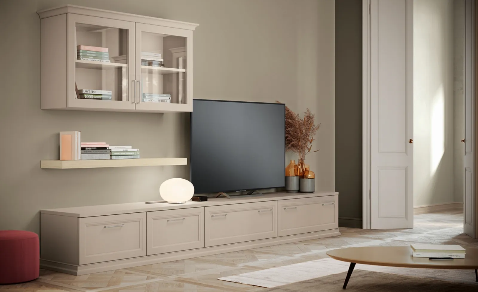 L'Arcadia AS010, un'elegante soluzione d'arredo firmata Colombini Casa, si distingue per la sua concezione modulare e la versatilità negli ambienti domestici, in particolare nei soggiorni. Questa composizione, classificata come parete attrezzata classica, esibisce un design che reinterpreta la tradizione con linee pulite e finiture cromatiche delicate, pensate per infondere un'atmosfera di raffinata armonia. La struttura è ingegnerizzata per ottimizzare la funzionalità e l'integrazione estetica, garantendo durabilità e prestazioni superiori grazie all'impiego di materiali selezionati e all'eccellenza del design italiano.