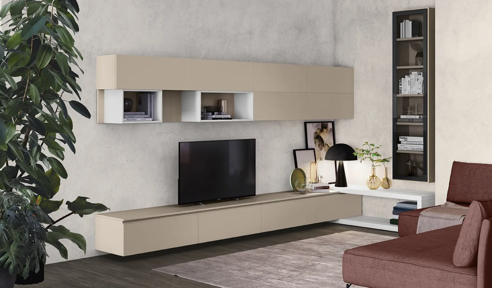 La parete attrezzata Golf Contract A02 è altamente modulare e personalizzabile nelle dimensioni standard. Puoi visionare i campioni di materiali e finiture presso la materioteca del negozio per creare un progetto su misura.