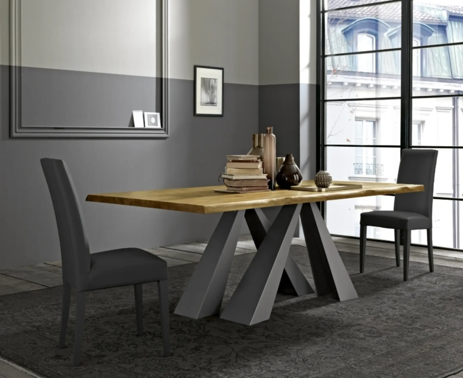 Per il tavolo Victory, puoi scegliere tra diversi materiali per il piano come legno, vetro, gres o laminato. Presso il nostro negozio, potrai visionare i campioni di tutti i materiali e le finiture nella nostra materioteca.