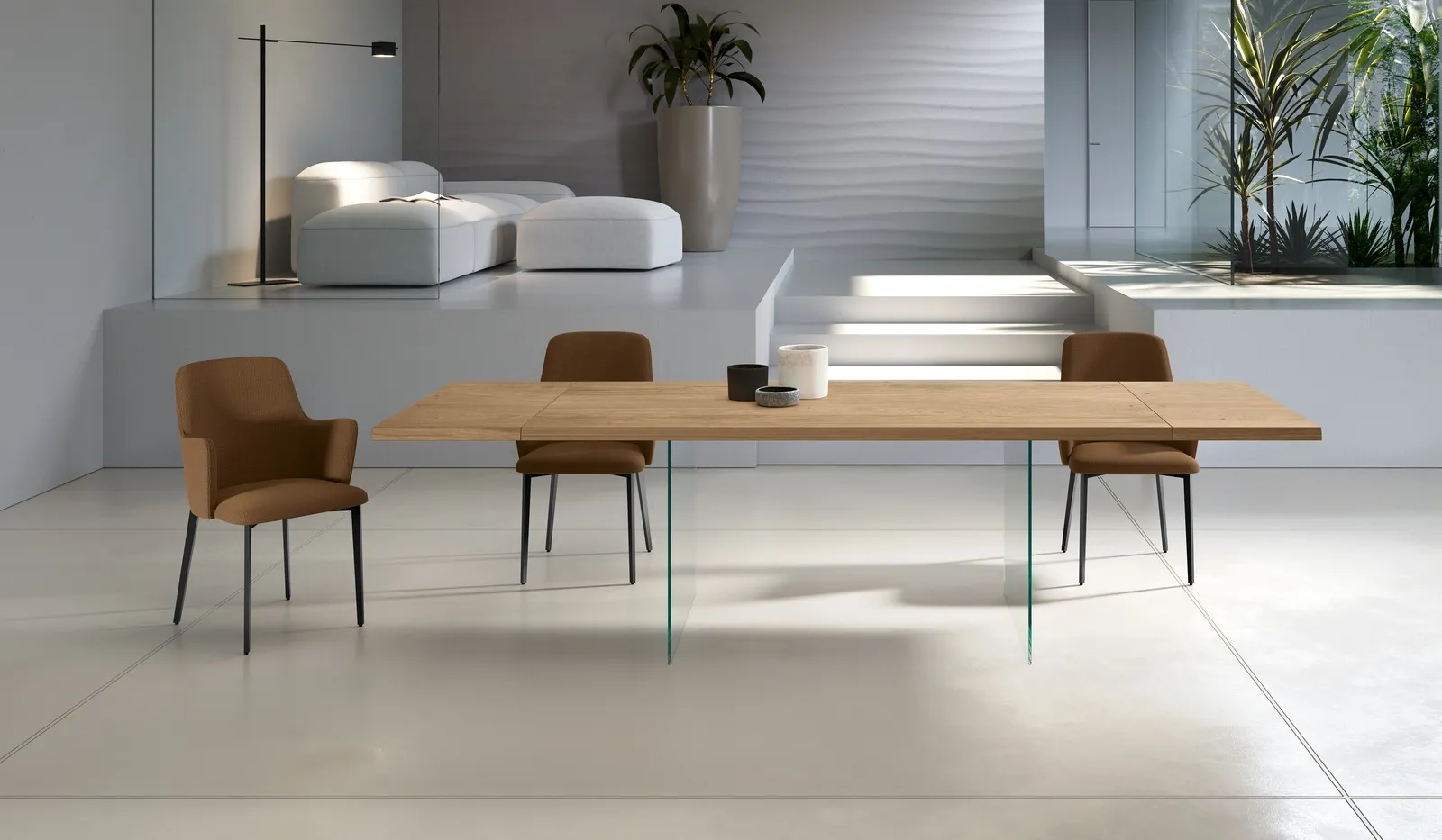 Scopri l'esclusivo tavolo allungabile Snooker di Stones, una soluzione d'arredo che coniuga eleganza e praticità, ora disponibile presso il nostro showroom Casa Viva Arreda di Infante Antonio a Fano. Questo pezzo distintivo presenta un raffinato piano in rovere impiallacciato e sofisticate gambe in cristallo temperato, creando un impatto visivo di grande leggerezza e modernità. La sua struttura, pur essendo solida, sembra quasi sospesa, rendendolo ideale anche per ottimizzare gli spazi più compatti. Il top è realizzato con truciolare di pioppo e bordo massellato, mentre le gambe sono in vetro extra trasparente. Snooker si adatta perfettamente alle tue esigenze con due opzioni di estensione flessibili: da 160 cm a 240 cm (grazie a due allunghe da 40 cm) o da 200 cm a 300 cm (con due prolunghe da 50 cm), facili da inserire per garantire la massima funzionalità senza sacrificare l'estetica. È la scelta perfetta per chi cerca un tavolo di carattere, visivamente leggero e capace di unire funzionalità a un design raffinato, ideale per ambienti moderni, luminosi o contemporanei. Siamo il punto di riferimento per l'arredamento di qualità nella provincia di Fano, garantendo un'esperienza d'acquisto senza pari.