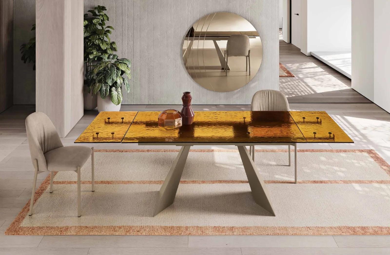 Nel nostro sito dedicato all'Arredamento Casa troverai tutto ciò di cui hai necessità per il living o la cucina. Scegli i mobili e complementi in vetro dei migliori brand per ultimare con funzionalità i tuoi locali senza mai tralasciare il valore estetico. Se vuoi sostituire i pezzi di arredo design che hai in casa o acquistarli per la prima volta, da noi potrai vedere dal vivo le soluzioni più originali in commercio. Durante la scelta del tavolo ideale per te È necessario valutare dimensioni, forme, finiture e stile, per ottimizzare lo spazio con un'ottima estetica. In showroom ti aspetta una ricca gamma di Tavoli allungabili dei migliori brand, tra cui anche il modello da pranzo presente in foto.